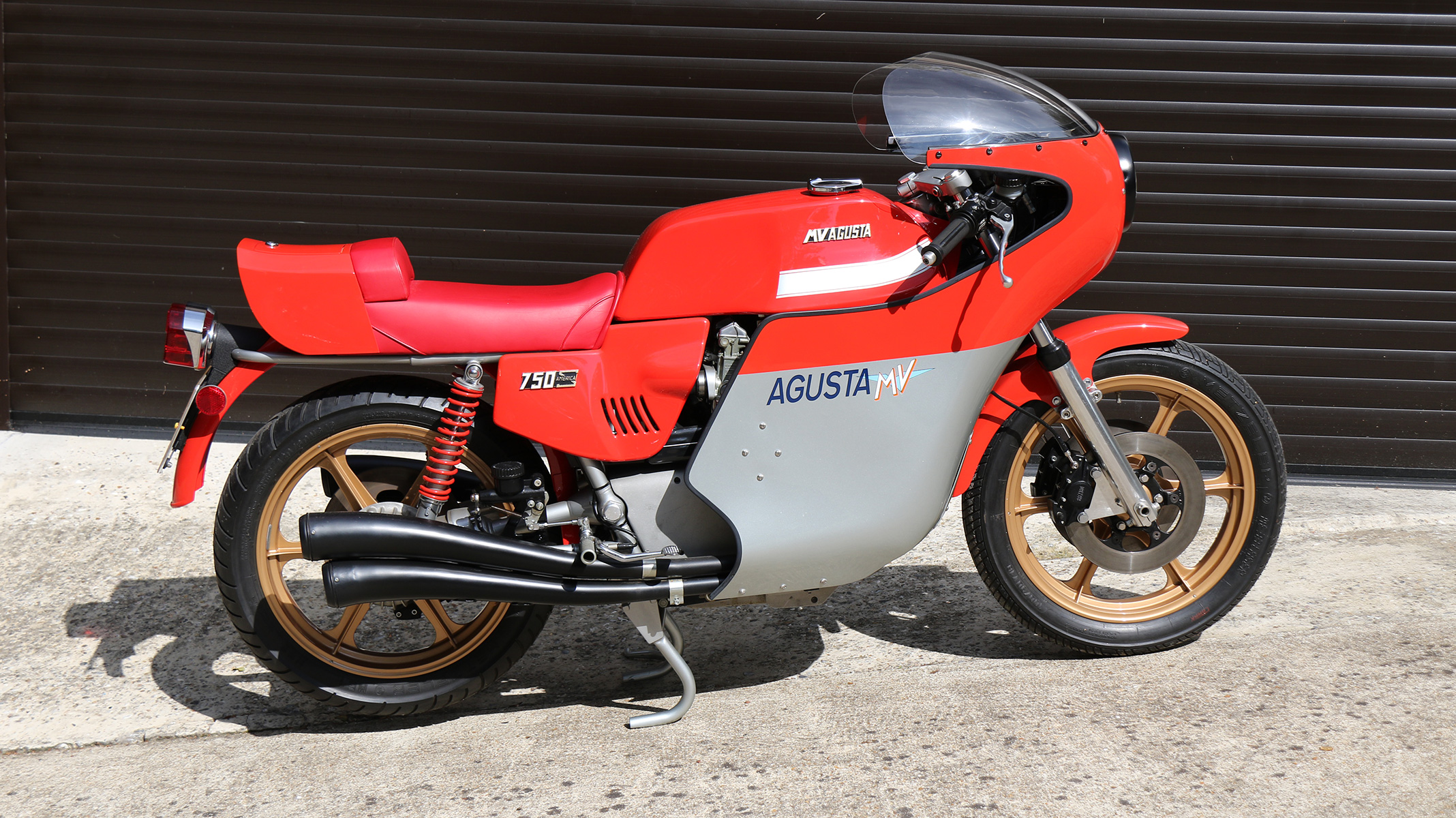 The MV Agusta 750S America was a project championed by Chris Garville and Jim Cotherman who ran the primary US importer of MV Agusta bikes in the 1970s. They insisted that there was a gap in the market for an expensive, high performance and low volume sports motorcycle inspired by MV Grand Prix race bikes. A special version of the 750s was conceived with a full fairing and engine bored out to 789cc, producing a claimed 75bhp.